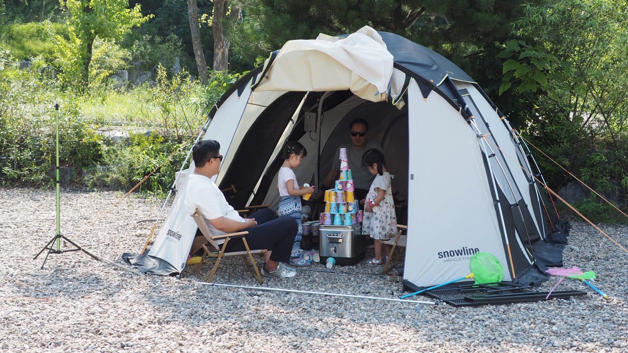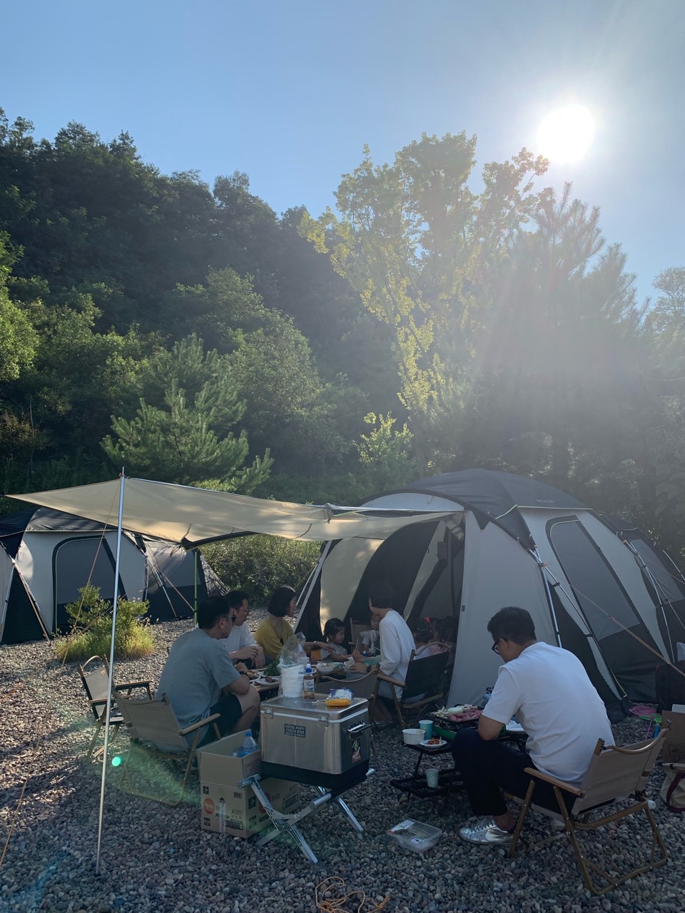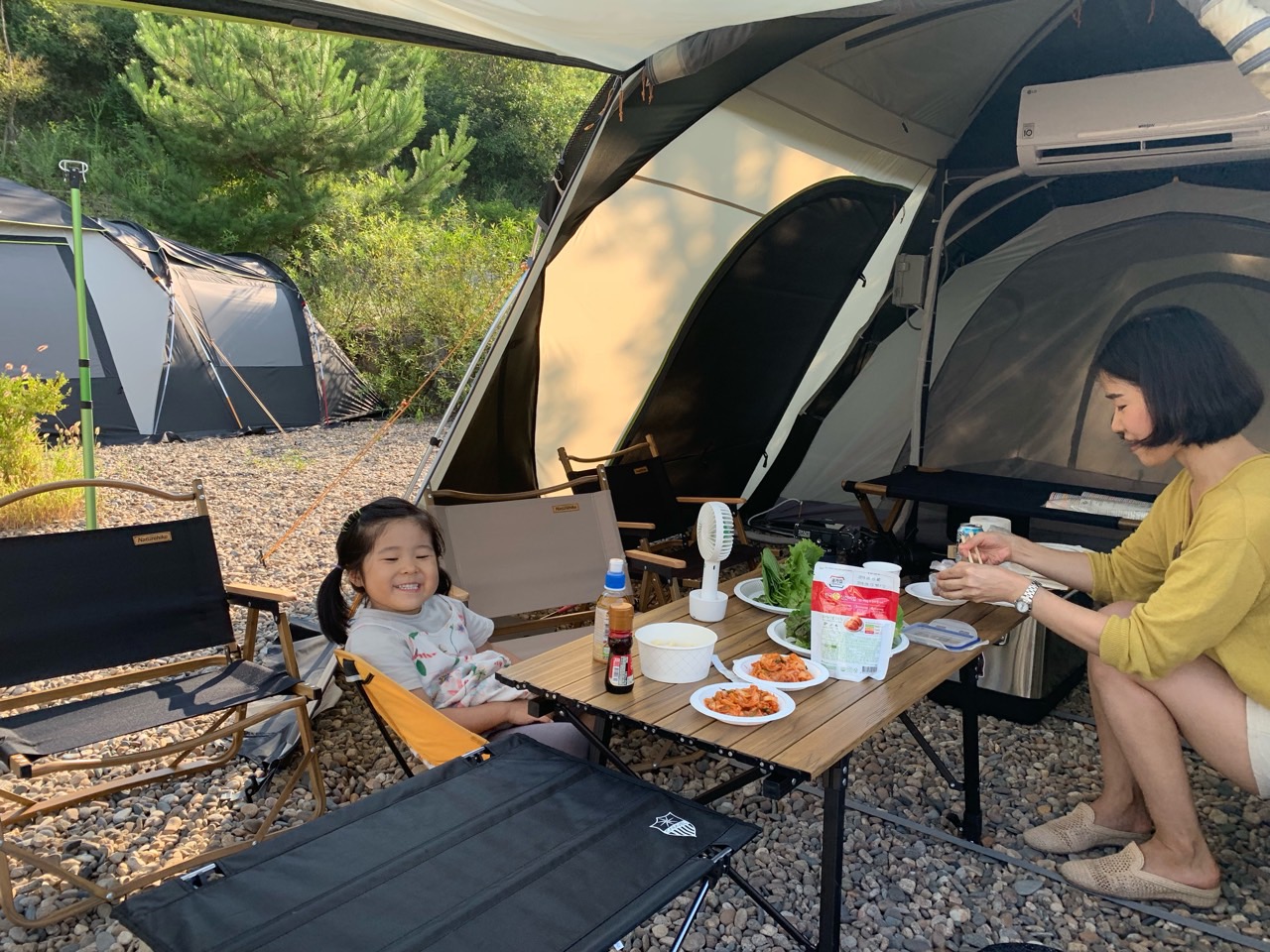 한 텐트에선 애들 놀게 하고, 다른 텐트에서는 밥 세팅하니 너무너무 편했다는.